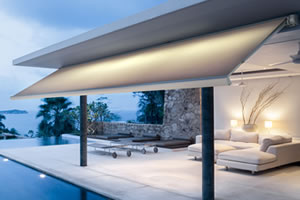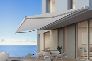 Un design avec des lignes aéro-dynamiques qui permet d'adapter ce store à tout type d'architecture. Grâce à son système de bras articulés Premium, la tension de la toile est assurée.